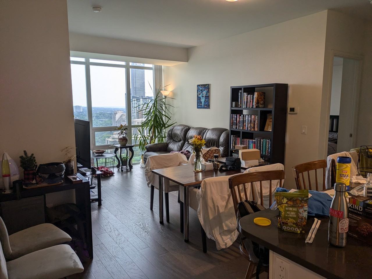 Partially Furnished 2 bed 2 bath Yorkville Condo for Rent near Bloor Yonge 5 minute walk to Bloor-Yonge station. Available Aug 31. 1 locker and 1 parking also included. 825 sqft spacious high floor unit at 825 Church St (The Milan) with excellent split bedroom layout and unobstructed views of Rosedale Valley. If parking is not needed you have the option to continue renting to current person using the parking space $160/mo. Water, heat, and AC included. Tenant pays hydro and internet. (approx $60 a month for hydro year round) Furnishings included in price: - Queen bed frame and mattress in master bedroom - L shaped desk in master bedroom - Couch, TV, and TV stand in living room - Dining table and 4 bar stools Additional furnishing available for purchase from current tenant Available unfurnished if desired.