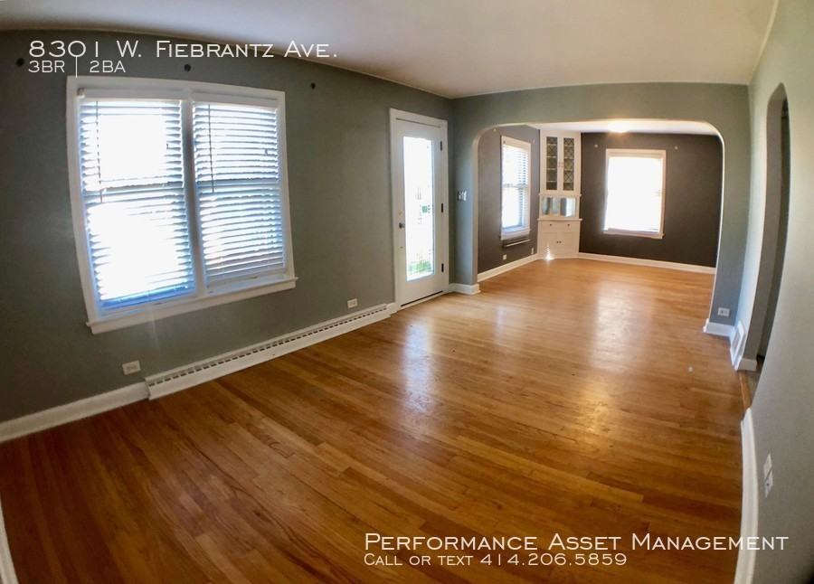 8301 W. Fiebrantz Ave, Milwaukee, WI 53222 - Rent: $1350 - Deposit: $1350 - Available: NOW! - 3 bedrooms - 1.5 bathrooms - 2 spacious bedrooms and 1 small bedroom that can be used as an office - 1 huge bathroom on main floor; 1/2 bathroom on 2nd floor - Located in Arlington Gardens neighborhood - Easy freeway access - Minutes from Lindsay Park - Several great parks, restaurants, and stores! - Milwaukee School District - Stunning hardwood throughout - Updated kitchen with new appliances included - Corner lot with spacious front and back yard - Freshly painted and updated, ready to move in! - Forced air heating and central air - Cozy basement with ample storage - Large 2 car garage with over head barn style storage - Tenants pay all utilities To schedule a showing please go to: www PAMMKE com rentals -No Prior Evictions, No Exceptions -Net monthly income must be 4x monthly rent