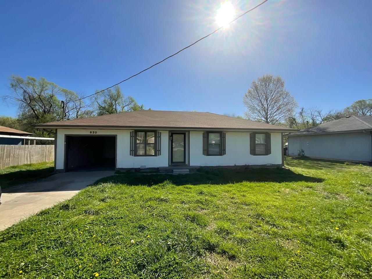 This three-bedroom, two-bathroom house features a spacious backyard and a single-car garage, ideal for a small family.