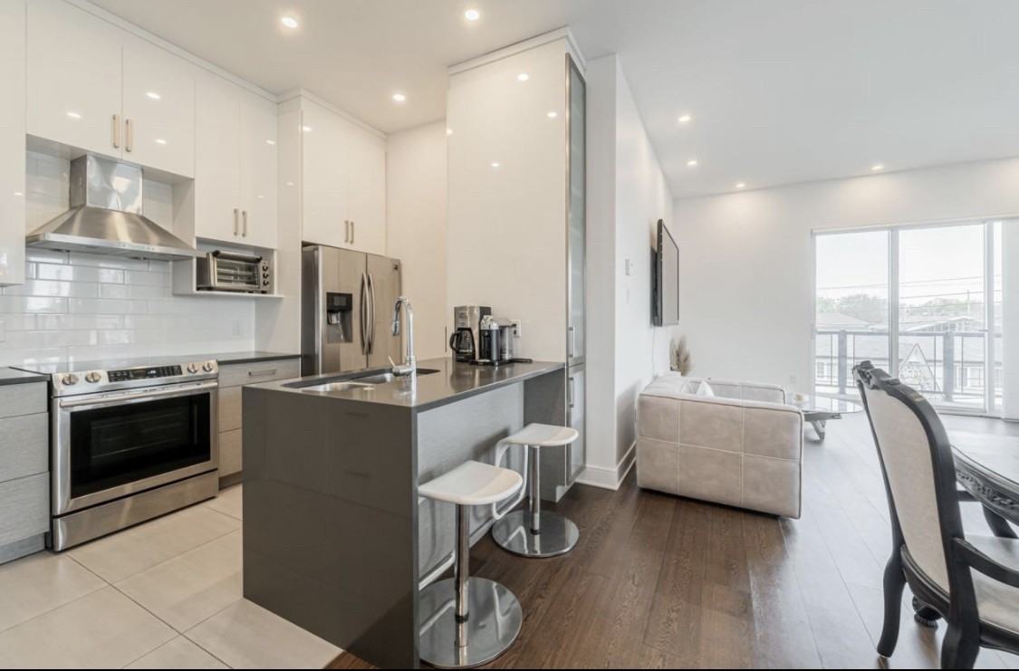 Located in the heart of Riviere-des-Prairies, O'Rive condo offers a peaceful home near the water. Open concept corner unit presents a modern look with quartz countertops. This unit comes fully furnished, as shown in the pictures.