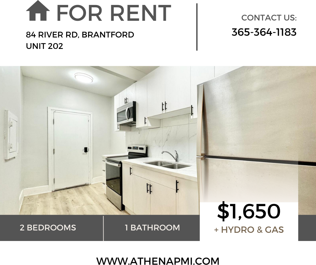 Welcome to your new home at 84 River Rd, Brantford- Unit 202! This cozy 2-bedroom upper level unit is located in a beautiful historic building, just steps away from the serene river! Features: -Fridge, Stove, Microwave -Living room with fireplace -Shared laundry in hallway -Assigned parking 1 spot + access to guest parking -Beautiful yard and garden space Rent: $1650+ hydro & gas Availability: Immediate move in Don't miss this opportunity—contact us today to schedule a viewing! To book a showing, please call the number or use the link below: 365-364-1183 https app tenantturner com listings athenapmi (Copy and paste to browser if needed) To book a virtual tour, please email us at: ****