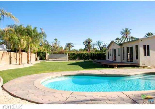 Across the street from Ruth Hardy Park, this three bedroom cottage on a private lot has astonishing unobstructed views. Facing west, the home looks out across a vast yard and new kidney shaped pool. Almost completely new, the house has been rebuilt and expanded from the floorboards to the metal roofing. The master bedroom with en suite bath opens to a deck that extends along the entire west face of the home. Another view bedroom enjoys this deck too, as does the kitchen. There is an ample living room and a third bedroom with en suite bath. The home is located off the main street, behind a house on Caballeros. This location insulates the home from traffic noise and makes it very private. Access is via a shared drive with only one neighbor. 92262CJ 17226536PS. Please call 760-991-3200.