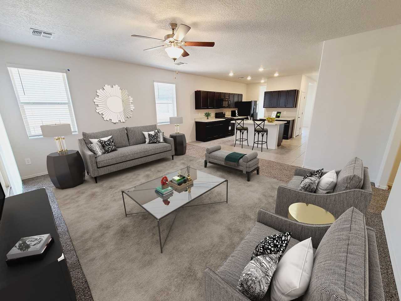 Welcome to this newly built, energy-efficient home in Los Lunas, NM! This modern 3-bedroom, 2-bathroom house boasts a range of amenities to make your life easier. The kitchen comes fully equipped with a refrigerator, dishwasher, disposal, stove/oven, and built-in microwave. Enjoy the comfort of refrigerated air throughout the home. Take in the beautiful views from the backyard, which is fully fenced for privacy. Don't miss out on this opportunity to live in a newly built, energy-efficient home in a great location!