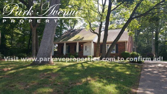 This beautiful brick home with a welcoming front porch is nestled on a large, landscaped lot. Hardwood floors and decorative trim moldings accent the interior. The floor plan features an elegant entry, formal living and dining rooms, and a first-floor bedroom and full bath. The kitchen with granite counter tops, crisp white cabinetry and bar seating opens to the den with a wood-burning fireplace. The upper-level master suite boasts a sitting area, a huge walk-in closet, and an updated bath with a frameless, tiled shower. Enjoy the ultimate entertaining space in the finished basement complete with a full wet bar, a second wood-burning fireplace, a half-bath and modern stained concrete flooring. Extend the living space outdoors on the screened porch and deck in the fenced backyard. Conveniently located to shopping, dining, schools and Wake Forest University! Lawn care is included.