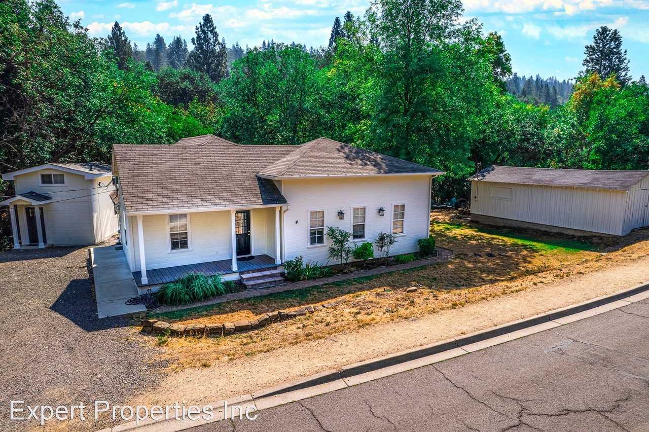 Charming 3-bedroom, 2-bathroom home located in the beautiful town of Jacksonville - Welcome to this charming 3-bedroom, 2-bathroom home located in the beautiful town of Jacksonville, OR. With its spacious feeling layout and desirable features, this house is sure to impress. As you step inside, you'll be greeted by vaulted ceilings and wood accents that create a warm and inviting atmosphere. The built-in shelves provide ample storage space for your belongings, while the covered porch offers a cozy spot to relax and enjoy the fresh air. With lots of parking available, you'll never have to worry about finding a spot for your vehicles. The large deck is perfect for hosting gatherings or simply enjoying the peaceful surroundings. Situated on a generous 1/2 acre lot, there is plenty of room to roam and explore. The bathrooms have been tastefully updated, offering a modern and stylish retreat. The newly updated kitchen boasts stainless steel appliances, solid white counter tops, and tile floors, making meal preparation a breeze. You'll love the convenience of the large pantry, ensuring you always have plenty of storage for your groceries. Stay comfortable year-round with the ceiling fan and wood floors that add a touch of elegance to the space. Central Heat & Air. Don't miss out on the opportunity to make this house your home. Schedule a showing today and experience all that this wonderful property has to offer. Shed in back is included, Cottage on the left and the and barn in front are NOT included.
