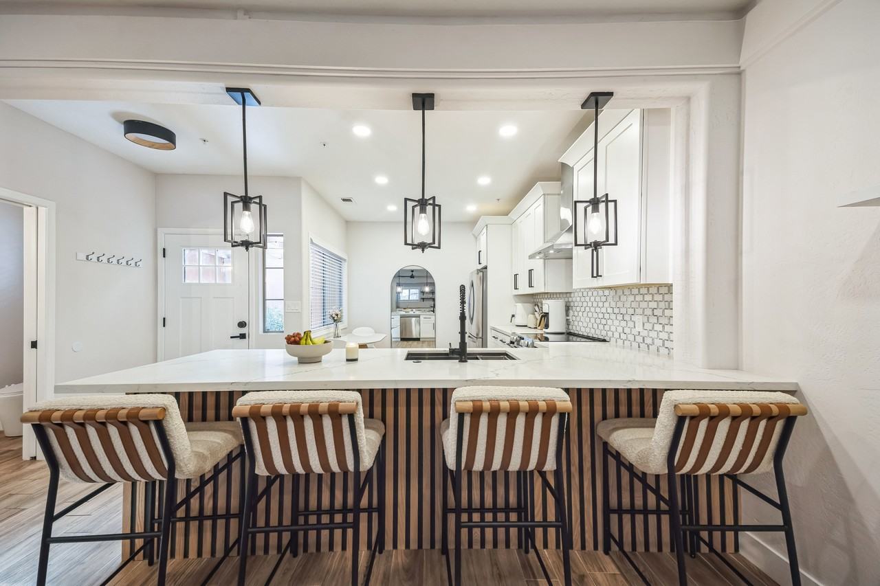 Gorgeous *FURNISHED* 2BR/2.5BA Sedona Townhome with Iconic Views & Prime Location. Newly remodeled and perfectly situated between the iconic Thunder Mountain, Peace Park and Airport Mesa Vortex. Two bright & equally spacious masters with private baths. Red Rock Views of Thunder Mountain. One of the few locations where you can walk to the movie theater, coffee shops and local restaurants. Directly behind the home you can find a park just a 5 minute walk away. The neighborhood is beautifully manicured with stunning landscaping and private sidewalk. Step into your Sedona escape at this fresh, newly remodeled townhome, designed for relaxation, adventure, and everything in between. Nestled in the highly sought-after West Sedona, this home offers a perfect blend of modern comfort, stunning scenery, and unbeatable convenience. Why Guests Will Love Staying Here Spacious & Stylish: With two floors of thoughtfully curated, bright, and modern interiors, this home is perfect for families, couples, or friends. Two Private Master Suites: Both upstairs bedrooms are equally spacious, each with a private en-suite bathroom, giving everyone their own retreat. There's also a convenient half bath downstairs. Please note: the second bedroom is currently being used as an office, but will be furnished as bedroom for your rental. Elevated Views: Wake up to Sedona's magic! Upstairs, the back master suite offers red rock views of iconic Thunder Mountain, while the front master suite overlooks the serene neighborhood. Outdoor Bliss: Enjoy morning coffee on the front patio bistro or gather with friends on the back patio, complete with a fire pit and dining area under Sedona's starry skies. Unbeatable Location: Explore the best of Sedona right outside your door. Walk to local coffee shops, local favorite restaurants, and entertainment. Love the outdoors? You're just minutes from Sedona's famous hiking and biking trails. Extra Perks for an Unforgettable Stay Reserved Parking: A private space right in front of the home makes coming and going effortless. Quiet & Serene Neighborhood: One of the most beautifully maintained townhome areas in Sedona, with peaceful surroundings and well manicured landscaping. Why Choose Sedona's West Side? West Sedona is where locals go for authentic charm and convenience. From the most notable dining options to quick access to Sedona's world-famous red rock trails, this is the place to be. You're close to everything, yet having a local experience. This is more than a rental it's your home base for making lasting memories in Sedona's most magical setting.