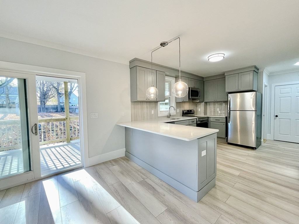 Luxury two-bedroom townhouse-style unit in the desirable Fairmont area of Boston-Hyde Park. Unit features an eat-in kitchen, living room, two full baths, and two bedrooms, primary bath. High-end finishes with modern amenities. Engineering flooring throughout, brand-new stainless-steel appliances, kitchen quartz countertops, freshly painted interior, ample closet space, and each room has separate mini split high-efficiency heating and cooling units. Sliders off the living room lead to a private brand-new deck and a beautiful outdoor space. Washer & Dryer located in the private basement and almost 317 Sq. Ft storage space in the basement. Separate driveway w/3 Parking spaces. Super location, 10.7 miles to Boston, Longwood Medical Area, Blue Hills Reservation, and major routes and highways. Luxury living in the city with a countryside feel. DON'T APPLY THROUGH AVAIL. CALL/TEXT US AT 617-765-4219. Listing is provided by The Cobi Team - William Raveis R. E. & Home Services ****