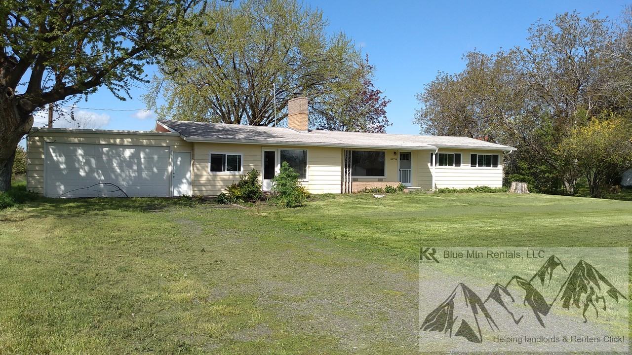 Rambler style home in country location 84734 Didion Lane Milton Freewater, OR 4 bd. 2 bath House 1765 Sq. Ft. $1700/mo. $2000 Dep. Screening Req. Available May 26th. 1 yr. lease required Pets on approval with fee. No smoking. Call/text 509-240-3325 for info/appt. Available May 26th on approved credit is this rambler style home located within 5 minutes of town. Like new inside with newer carpet, vinyl plank flooring, paint, newer windows in some rooms and electrical, plumbing, landscaping work has been done. Family room off living room/kitchen or use as the dining room. Separate workshop off sun room. Store room off sun room for canned goods or? Equipped with stove, fridge, radiant ceiling heat, wall AC and washer & dryer hookups. There is a wood stove for secondary heat in the home. 1 car garage and additional off street parking available. Slider or Sun room leads to paver stone patio. Home has a private well with a newer pump and on septic just pumped recently. Tenant pays all other utilities. Located near farm lands, this quiet country setting is family friendly. Pasture is not included. Next door to Milton - Stateline Adventist School. Easy access to Walla Walla via Hwy 125/11. Call today for your personal tour