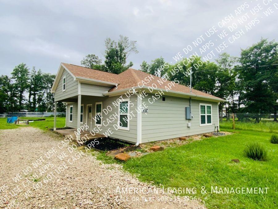 Welcome to this new construction Home, beaming with lots of charm & character. Step on to a covered front porch and into an open concept living room and kitchen area. Kitchen offers all the latest in formica countertops, white cabinetry, stainless appliances (stove/range/dishwasher), large pantry and tiled floors throughout. Primary bedroom with a walk in custom closet and walk through to a beautiful en suite. Second bedroom has 2 large walk in closets and third room can be an additional bedroom or home office, complete with an additional full bath and tiled shower. Home is situated on nearly half an acre with exterior security lighting and fenced in yard. Don’t miss your opportunity to make this home! Application fee $95 per adult Security Deposit $1500 Rent includes Resident Benefits Package