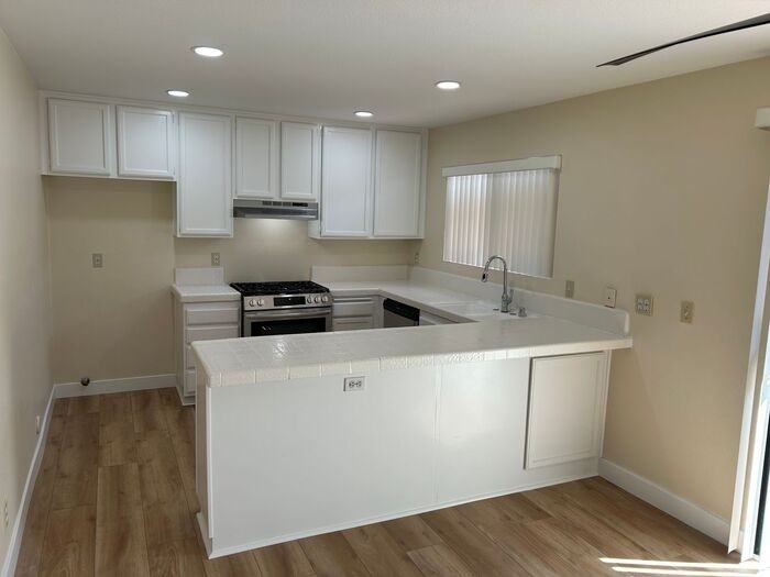 Welcome to this charming and spacious two story 2 bedroom, 2.5 bathroom condo located in Stanton. This cozy space has new paint, hardwood floors, bathroom vanities, appliances and fixtures, window blinds, also with refinished showers/bathtubs and kitchen countertops. There is a great private patio and a nice sized 2-car garage with laundry hookups. It has Central AC & Heat. The community offers a refreshing association pool and relaxing jacuzzi for your enjoyment. This is a nice and smaller HOA community with the added security of also being gated. Don't miss out on this opportunity to live in a peaceful and welcoming neighborhood. Self Tours available by registering with Rently This property allows self guided viewing without an appointment. Contact for details.
