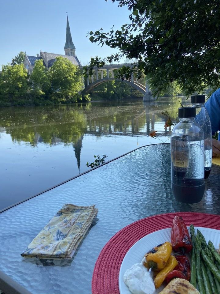 4 to 8 month rental only. Beautiful second story furnished apartment with separate entrance overlooking the river in downtown Guelph. Fully furnished and ready to move in. Use of canoe at dock included. Small private balcony with river view. Furnishings: 32” TV, Dishwasher, Fridge/Freezer, Microwave, Toaster, Electric Kettle, Induction cook top, Mini-oven, Queen bed, Dresser, Air conditioner, Dining table and chairs. No Smoking, No pets. Suitable for visiting academic , mature student or professional. Available May 1st upto 8 months