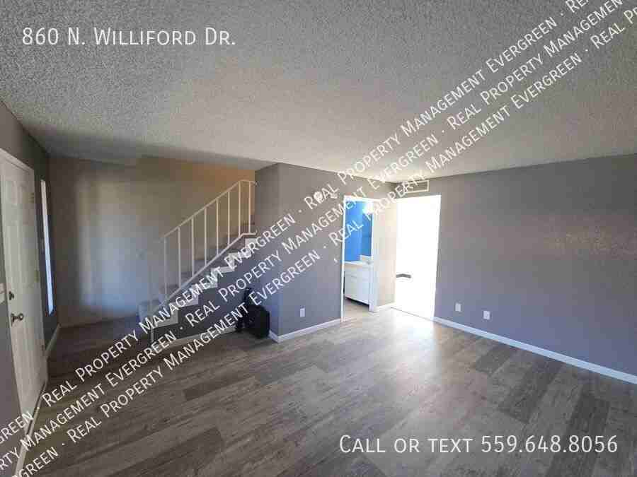 Discover comfortable 2-bedroom, 1.5-bath apartments at 860 N. Williford Dr. Porterville, CA. The unit includes water, trash, and sewer services and features new paint and new floors throughout, offering a fresh, move-in-ready feel. Conveniently located in Porterville, these apartments provide a practical, well-maintained living option. Give us a call for more information! *Other terms, fees, and conditions may apply. Check the listing at rpmevergreen. com for details. SHOWING INSTRUCTIONS: To schedule a showing please call 559-405-9050 or visit our website https www rpmevergreen com houses-rent Move in with ZERO DEPOSIT DOWN! Replace your security deposit. Enroll online when applying to rent your home, it takes 60 seconds. Ask your leasing agent for additional details. Insurance policies are provided through Rhino, an independent third party. Premiums are inclusive of enrollment into Rhino. SMOKING: No Smoking Allowed in the Property LEASE LENGTH: 12 month minimum HOW TO APPLY: The applications are found on our website, www.rpmevergreen.com, located on the listing page. APPLICATION TURNAROUND TIME: Within 72 business hours ADDITIONAL FEES NOT INCLUDED IN RENT: * $52 Application Fee per applicant 18 or older, Non-Refundable * Deposit: 100% Refundable Applicant understands and agrees, if approved, in addition to rent the following fees will be assessed: One-time Documentation Fee: $119 – This fee is for the preparation of the lease, lease execution, corresponding documents, and for conducting move-in inspection and providing digital copies with pictures. Resident Care Plan Fee: $39 per month – This fee is for the enrollment and continued access to the Rental Rewards Piñata program, online portal access and 24/7 maintenance hotline. Additionally, it includes a Rental Insurance Policy that covers a minimum of $15,000 for loss of most personal property, typically due to sudden and accidental loss due to theft, fire, water damage, and the like, a liability policy that covers up to $100,000, and a loss of use policy that covers up to $3,000 in expenses, all underwritten by an A-rated insurance carrier. CalDRE#01993678 All information is deemed reliable but not guaranteed and is subject to change. Water/Trash/Sewer