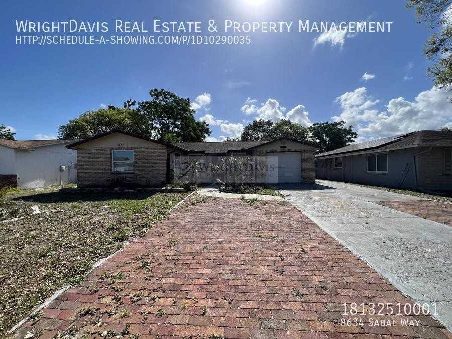 Beautiful 3BR/1BA home in Ridge Crest Gardens! This charming property features a striking brick fade that perfectly complements the brick driveway and red-trimmed exterior windows and doors. Step inside to an inviting, spacious open floor plan with plenty of natural light. The kitchen, overlooking a large, fully fenced backyard, is bright and functional ideal for entertaining or quiet family meals. Recently updated with stylish new tile flooring, the living room and bedrooms offer modern comfort and easy maintenance. The attached one-car garage includes an additional exterior access door and a custom workspace, perfect for DIY enthusiasts or extra storage. Located just minutes from Werner-Boyce Salt Springs State Park, Gulf View Square Mall, and US-19, this home offers both convenience and access to recreational activities. In addition to the advertised base rent, all residents are enrolled in the Resident Benefits Package (RBP) for $50.00/month which includes HVAC air filter delivery, credit building to help boost your credit score with timely rent payments, utility concierge service making utility connection a breeze during your move-in, and much more! More details upon application. Pets welcome! Vacant and Available now! Carpet Ceramic Tile Fenced Pet Restrictions Pets Allowed Uncovered Patio Wood Flooring Laminate