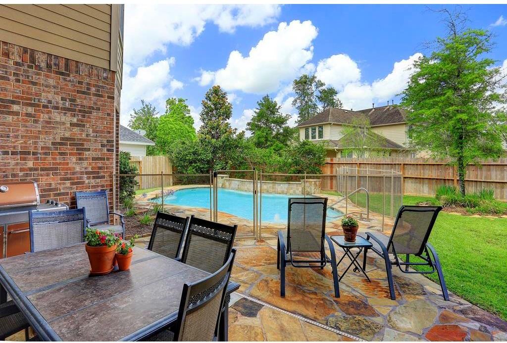 Absolutely stunning family home with sparkling pool-chiller/heater! Details in the selections are evident in every corner! From the grand entry flanked by the formal dining & study to the oversized private lot, sophistication is apparent. Chefs dream granite kitchen with extra-large island & upgraded stainless appliances-will be the hub of this home.Large master suite. Upstairs features gameroom, media room, exercise room & computer area. Covered patio & 3 Car garage -Too much to list-must see! Home did not flood!