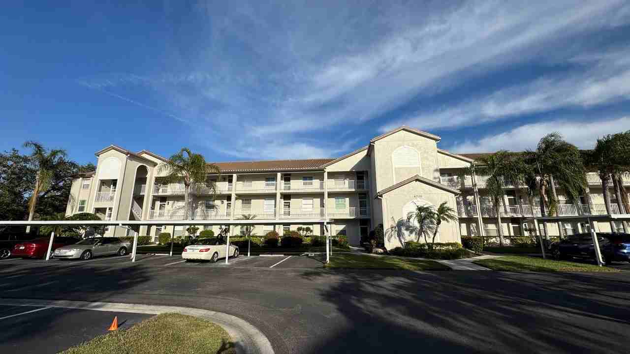 Furnished Short Term Rental Available beginning Booked 2/1/26 - 3/31/26. Wide open views from this 3rd Floor Condo with Vaulted Ceilings, Engineered Oak Wood Floors Throughout the Main Living areas and views of the 8th Fairway. Don't miss this chance to enjoy the Sunrise Views of the Fairway and across to the Preserve land and Lake. The 2 Bedroom 2 Bath unit Boasts Stainless Steel Appliances, updated shower in the Master Bath with High Quality Shower Head System and a whirlpool tub with shower in the Guest bathroom. Stylish Paint throughout. Master Bedroom has its own slider out to the lanai and walk in closet. Offered Partially Furnished. Carport for the Owners and lots of guest parking as well. Terraces Condo Group has Recently New tile roofs, Modernized Paint colors, community pool and great Pickleball/Tennis court. Community Grills and Gathering Areas make for a social and fun community to be a part of part time or year a round.