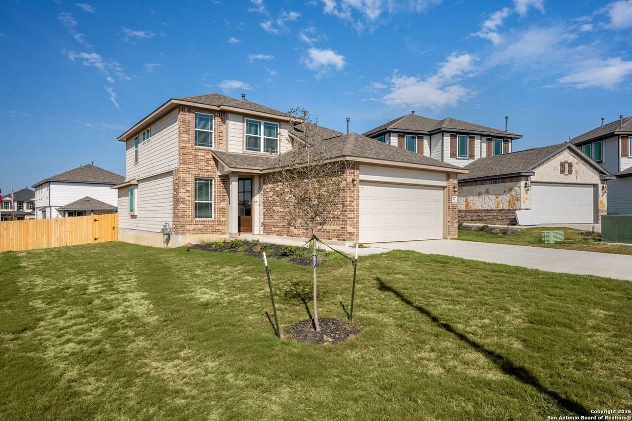 Property Status: Active Spacious two-story home featuring 4 bedrooms and 2.5 baths with a functional and inviting floorplan. High ceilings and large windows create an open, airy atmosphere filled with natural light. The kitchen offers granite countertops, a large center island, and gas cooking, ideal for everyday living and entertaining. The main level features generous living and dining areas with hard-surface flooring, while carpet is located only upstairs and in the bedrooms. All bedrooms are upstairs for added privacy, along with a versatile loft perfect for a second living area, home office, or game room. The primary suite includes an en-suite bath and ample closet space. Additional highlights include spacious secondary bedrooms and a private backyard. Conveniently located in Elmendorf near Calaveras Lake with quick access to Loop 1604 East. Office Phone: (210) 696-9996 Copyright © 2026 LERA MLS. All rights reserved. All information provided by the listing agent/broker is deemed reliable but is not guaranteed and should be independently verified.