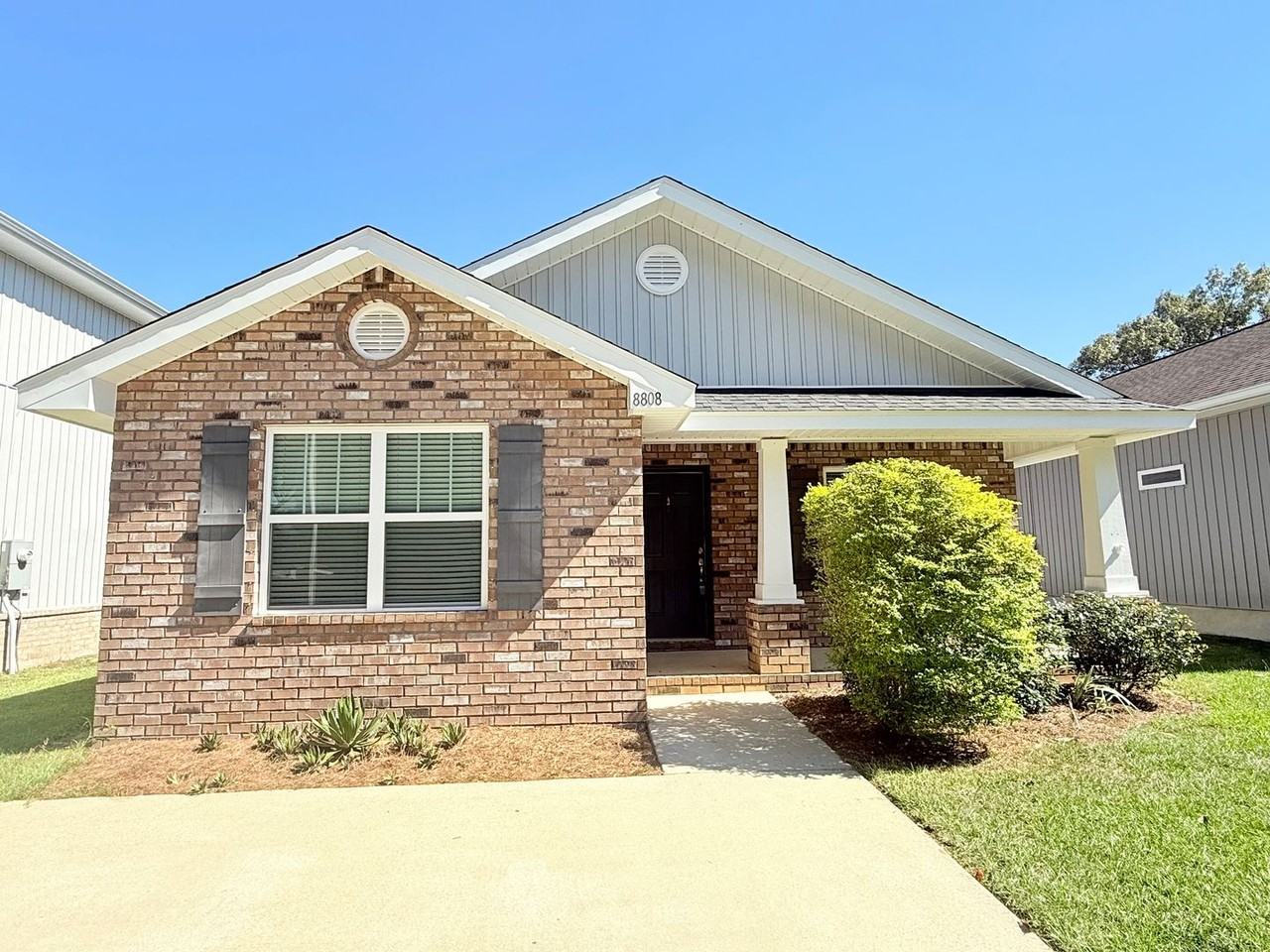 View in 3D Here: https view ricoh360 com 3bf7d877-c0e6-4328-b165-815dc3fb4c70 This home is ideally situated, offering convenient access to Target, Publix, UWF, West Florida Hospital, and much more. Upon entering, you're greeted by the bright, inviting kitchen featuring solid wood cabinetry with brushed nickel hardware, an elegant, spacious countertop, and stainless steel appliances, including a flattop range, dishwasher, microwave, and refrigerator. The open concept layout flows seamlessly from kitchen to living/dining areas, with a counter-height bar providing the ideal setting for casual meals or social gatherings. The master bedroom includes a generous walk-in-closet and beautiful tray ceiling. Two additional bedrooms, located at the front of the home, share a hallway with a second full bathroom. Don't miss out on this beautiful home—schedule a showing today!