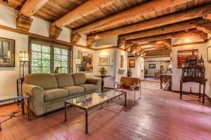 The NY Times loved this home and so will you. Extraordinary 1 story adobe hacienda shaded by huge trees on 2.12 green, irrigated acres near the new Valle Del Oro Nature Preserve. NM architectural detailing abounds: vigas, 4 kiva fireplaces, brick floors & central courtyard w/water feature. Chef's kitchen has huge island, granite & professional Blue Star stove. Living & dining rooms open to wide shaded portal. Other living areas include library & huge 19'x 16' studio/office. Orchard with fruit trees, small barn and piped fenced pasture for horses. Deeded access to nearby trails for walking,biking or riding. Enjoy living in this quiet neighborhood of fine homes just 15 minutes from ABQ airport.