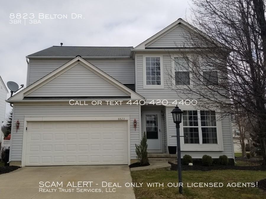 Tour this home soon and apply to rent before it is gone. Nothing like this is on the market or has been recently. As you tour this home you will notice the open two story floor plan with balcony, loft and vaulted ceilings. The first floor has a half bath, a great room for entertaining with lots of light coming in from the back yard. In the great room you will notice the black kitchen cabinets offset by the stainless steel appliances, white trim and luxurious gray paint. Go out the sliding doors to the patio small pond with gold fish. This patio area comes with patio furniture and a patio bar. The downstairs is finished with a bar and home theator stereo set up as well as an extra room which could make a guest bedroom or office and utility and storage area. Come up to the second floor with a loft area and three bedrooms including a master suite with a full bathroom and spacious walk in closet. When you lease this home you get to be part of the community with all of its ammenities. There are walking trailes, a pool and a club house. This home is just 3 mles from Chestnut Commons and just off the 83 / 480 highway ramp which makes quick access to shopping in North Olmsted and the Airport. There are many nice places to shop and eat nearby. Occupancy: This property is occupied. Current tenant will vacate 4/30/18 Video tour: COMING SOON Availability: Visit http://OhioRental.info to schedule online or call 440-484-5800 for convenient and quick showing. Driving directions: Chestnut Ridge to Victoria Ln to Terrel Drive to Belton Drive Pets: This home is pet friendly. Cost of pet is $35 per animal per month. Dogs on the insurance ban list not allowed. Utilities: Tenant pays water, sewer, trash, gas, electric, internet and phone. * Appliances: Landlord provides range, stove, refrigerator, dish washer, dryer, washer Parking: Parking available in driveway, on street and in 2 car garage Section 8: Section 8 vouchers will not be accepted at this property Tenant insurance: Landlord insurance never covers tenant property so proof of tenant insurance is required before move in. We have found it very much appreciated by tenants and it gives peace of mind. It can usually be purchased for a minimal amount of money. Application and screening: All applicants over 18 must fill out application and pay application fee of $35. Property will continue to be offered until Realty Trust Services is in possession certified funds to hold property from an APPROVED applicant. We screen on multiple dimensions with an eye to see why and how applicants could in fact be great tenants. If you want this home please apply! Landlord may make screening exceptions in exchange for alternative terms. For rent: All Realty Trust Services homes for rent are available at http://OhioRental.info