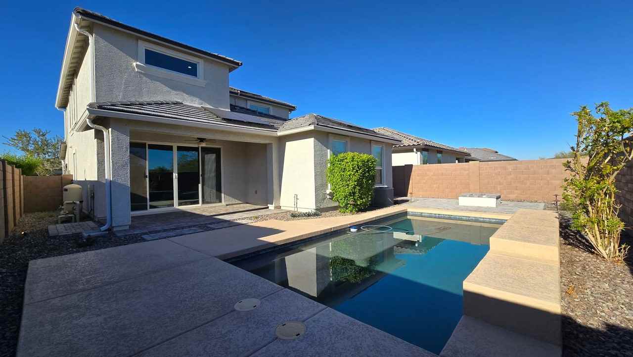 Welcome to this stunning 4-bedroom, 2.5-bathroom home located in the desirable Goodyear, AZ. This property is nestled within the incredible Estrella Mountain Ranch community, offering a plethora of amenities for your enjoyment. Lakes, gyms, pools, trails are yours to use for just a one time $100 fee. There is also a Troon managed golf course within Estrella. The home comes fully equipped with all necessary appliances, making your move-in process seamless and stress-free. One of the standout features of this property is the private pool, perfect for those hot Arizona days. The best part? Pool service is included, so you can enjoy without the hassle of maintenance. This home is also SOLAR-powered, making it not only eco-friendly but also cost-effective. The spacious layout includes a large loft upstairs, offering a small mountain view. This home is not just a house, but a lifestyle. Experience the best of Goodyear living in this beautiful home. Security deposit of $2200, $400 cleaning deposit, $20 mthly admin fee. The owner will consider your one small dog with a $400 non refundable pet fee. Tenant must maintain tenant insurance during their tenancy. 650 minimum credit required.