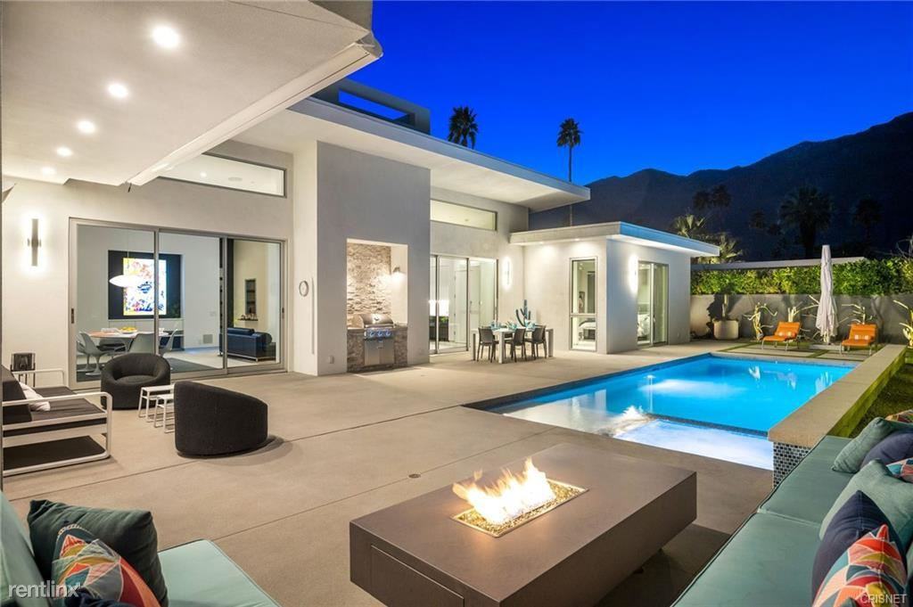 New custom build, modern architectural home is now available for your exclusive getaway. This mid-century inspired home is fully Gated for total privacy and perfectly located in the peaceful residential neighborhood of Tahrquitz River Estates, within minutes of downtown Palm Springs. In addition to the 3 Bedrooms, the home offers a media room as well as an spacious office for remote work. Off a separate wing, the primary suite offers access to an outdoor shower as well as the pool. The second en-suite bedroom, third bedroom, additional full bath, and laundry can be found off the main hall in the guest wing. The inside of this property features a fabulous open floor plan, high ceilings, and walls of glass that let the inside spaces flow seamlessly to the outside. European-style touches in the Kitchen and bathrooms include Miele Appliances, Liebherr refrigerators and Grohe faucets. Relax in the custom pool and spa while enjoying the view of the mountains. The outdoor entertaining space offers a dining table, a gas BBQ as well as a firepit and seating area with spectacular mountain views. Enjoy true luxury Palm Springs lifestyle within the privacy of one’s own home. 0307 92264KMSR22038488 Please call 760-659-5500 **** Listing provided by Marly Tempel of Rodeo Realty (LA State License:01384323) 760Leases. com No Pets Allowed