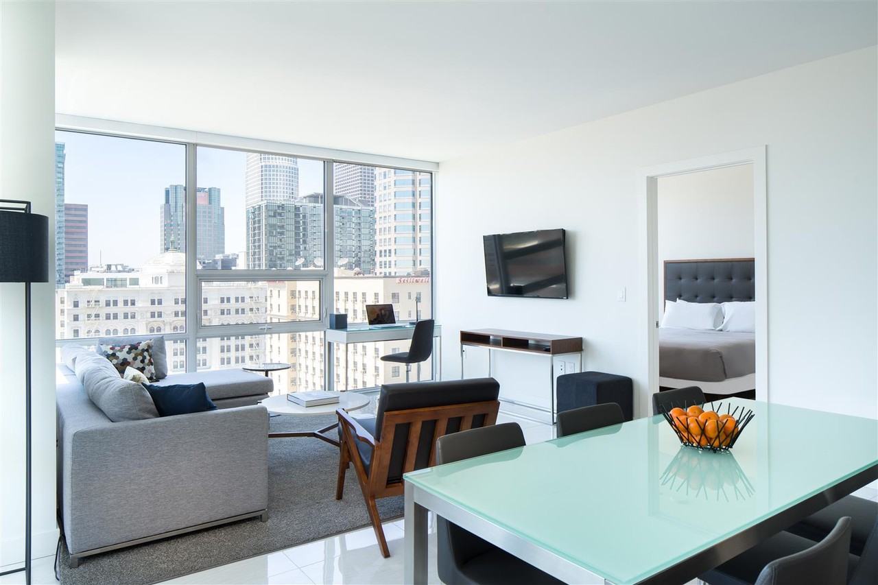 LEVEL Furnished Living specializes in luxurious furnished apartments, perfect for short or long-term stays. All guests and residents have exclusive access to the 37,000 sq.ft. L Club, which includes an outdoor heated pool and hot tub, sauna and steam room, rooftop basketball court, expansive fitness center and more. Business travelers can take advantage of large high-tech boardrooms, complimentary Wi-Fi and 24-hour business services. This 710 sq.ft. one bedroom home boasts city views, open-concept living and a gourmet kitchen with everything you could need – from Sub-Zero and Bosch appliances, utensils, tableware and coffee maker. Enjoy in-suite laundry, a dedicated phone line with complimentary local calls, cable television, Wi-Fi and air conditioning. Sleep well in the custom king-size bed and pull out sofa bed, or curl up and watch a movie on one of two large flat screen smart TVs. Monthly rent includes weekly housekeeping service and all utilities such as, electricity, gas, water, sewer, trash, high-speed internet, and air conditioning. Close to Staple Center, LA Live and too many restaurants to mention. Pet Friendly! Call today for more information or to book an appointment.