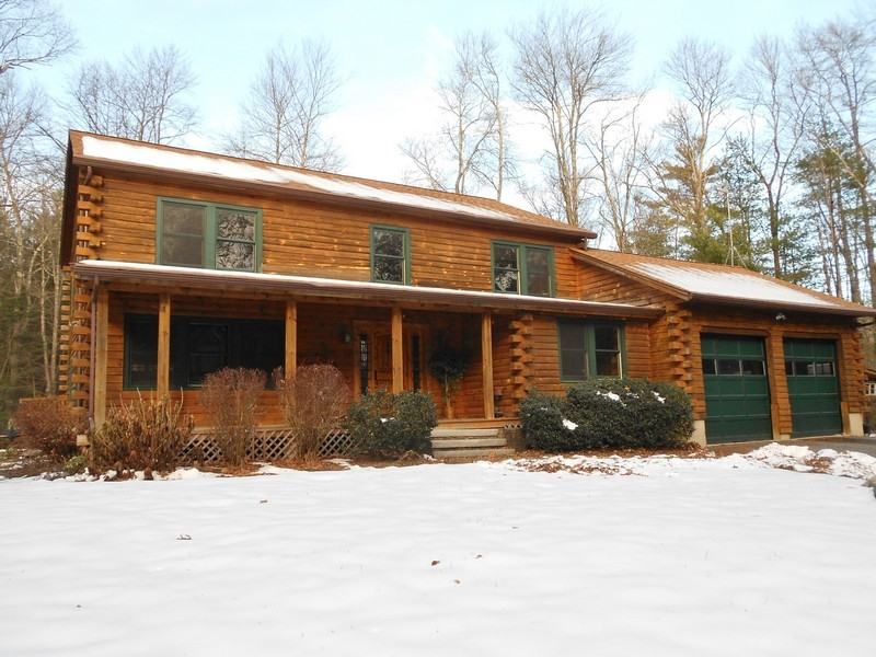 This fabulous Cabin in the Woods on 9+acres features a living room with fireplace and sliders to stone patio, spacious eat-in kitchen with soapstone counters, 1st floor family room with sliders to deck, den/office, 3 baths, 3 bedrooms which includes a Master Suite with walk-in closet, laundry and full bath with slider to private balcony deck. Also featured is a media room and wine cellar in lower level, 2 car attached garage PLUS wraparound deck, terrace and inground spa tub. This is a great nature lovers location but still with easy access to highway.