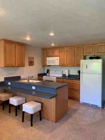 This unit is very bright and spacious, due to the high ceilings. It is one of a kind because of its spiral staircase that leads upstairs to two bedrooms. The bedding patterns make for a wonderful place to sleep or hang out and watch television. This unit receives compliments for its lovely sitting area on the porch with new seating, an outdoor fan, and outdoor shades. This unit is accommodating to the vacation needs of all ages. Everyone wants to stay at The Best of The Bunch. Sleep Maximum - 6 Maximum Adults - 6 Lower Bedroom: 1 Cal King Upper Bedroom - 1 Queen Upper Bedroom- 1 Bunk Bed 2 Bathrooms Dishwasher, W/D, Microwave, Newer Stove & Refrigerator, 2 TVs with Cable, 2 VCRs, DVD, Stereo, Books, Central Air, and Gas Grill No Pets No Smoking $100/Month 2x Month Cleaning $800 Deposit