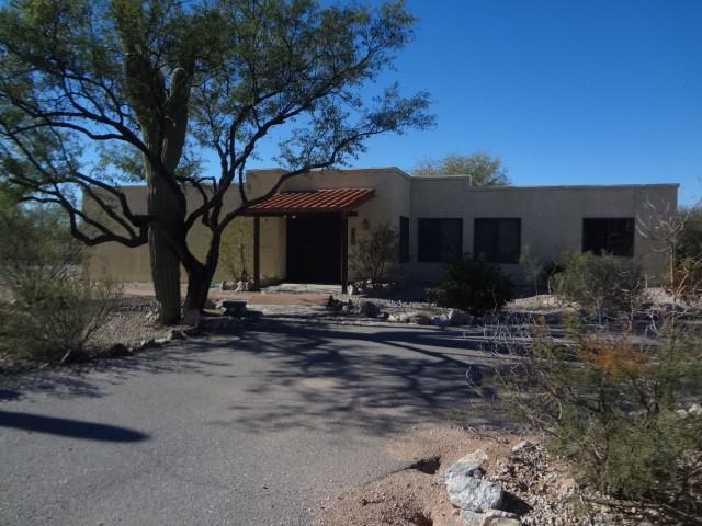Beautiful ranch style home on acre lot with spectacular views of the Catalina Mountains. No HOA and lots of room to park the toys! Custom double door entry with kokopelli etching in the Saltillo tile. Atrium at foyer including skylite. Formal living room and dining room perfect for entertaining. Kitchen open to family complete with skylite, all appliances, double door pantry and full length breakfast bar. Family room complete with brick fireplace with wood hearth, built in bookshelves and skylites. First bedroom wing has the Extra large master bedroom with slider to patio/pool/spa, walk in closet, full bath with double sinks, skylite and door from bathroom to pool. Another bedroom and hall bath with walk in shower. Second bedroom wing complete with 3 bedrooms and full bath with double sinks and skylite. One of these bedrooms also has slider to patio/pool/spa. Covered patio leads to fenced pebble-tec pool with waterfall and spa. Fully walled yard complete with double drive through gate to yard and artificial grass. This property also has a detached workshop with 1/2 bath, wall A/C, water, electricity and sliding garage style door perfect for those projects. This home has dual cooling as well. Hurry and call 520 888-5405