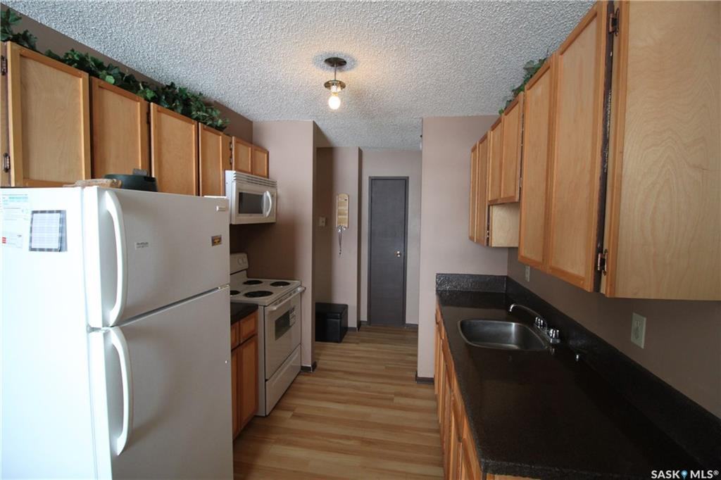 East facing, 2-bedroom corner unit, located on the top (3rd) floor. Recently redone with newer vinyl plank flooring, PVC windows. Bathroom upgraded with new ceramic tile. Newer stove and microwave hood fan. Balcony redone in 2013. Dining room window overlooking the park and school playground to the north. Large in-suite storage room. Complex has a common coin-op laundry room with three commercial washers and three dryers on main floor. Heat and water included. 1 paved parking spot. Bishop Roborecki School, park, and playground right out your door. Bus stops just outside. Walking distance to Superstore, Canadian Tire, Dollarama, Safeway, and Confederation Mall. The Shaw Center and Kensington Shopping Centre is only a 5-minute drive. No elevator. Rent: $1,050/mo plus electrical. Security Deposit 1/2 due at time of approval and 1/2 due within 60 days of move-in. Text 306-361-1243 or email **** for applications or questions.