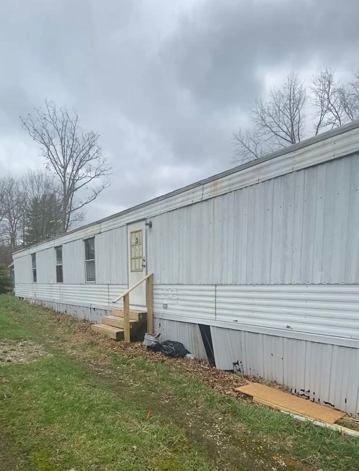 Nice trailer in Cross Lanes features 3 bedrooms, 2 bathrooms, kitchen, living room, dining area, laundry hooks and small yard.