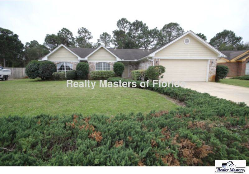 Pet friendly Coral Creek home just minutes to NAS Pensacola and Perdido Key Beaches. With over 2,150 square feet, this home has 3 bedrooms 2 baths, a 2 car garage, and a large private backyard. Fully tiled throughout with no carpet. Eat in kitchen with granite counter tops and nice appliances ( fridge, stove, microwave and dishwasher). Master Bedroom suite features high ceilings, double walk in closets, a garden tub and a separate shower. Gas heat and water heater. Home sits on a 1/2 acre lot which backs up to a greenbelt and is privacy fenced on both sides. Pet friendly home with $250 nonrefundable pet fee per pet ( no aggressive breeds will be considered). Home is ready for move in around November 15, 2019.