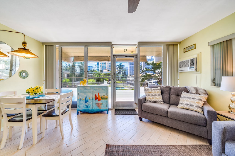 Property Id: 1495521 *All New Windows and Doors* You can't find a better location than this! Beautifully decorated and fully furnished one bedroom, one bathroom condo located on the intercostal waterway canal. Nestled between the historical Bonnet house and Hugh Taylor Birch park; steps to central Fort Lauderdale Beach. This condo is in a safe, quiet gated community walking distance to tons of shopping , grocery stores , Galleria Mall, entertainment, and abundance of excellent restaurants. This condo shares a heated pool, common area with comfy outdoor furniture, BBQ, and laundry room on site. The kitchen is fully stocked with all your cooking needs. After a fun day at the beach, dip into the pool or after a full day of shopping at the Galleria mall, you can grab a glass of wine and step out onto you own balcony to enjoy a beautiful sunset to unwind. This unit has the best panoramic views of the waterway. Possible boat slip for lease with board approval. One occupant preferred