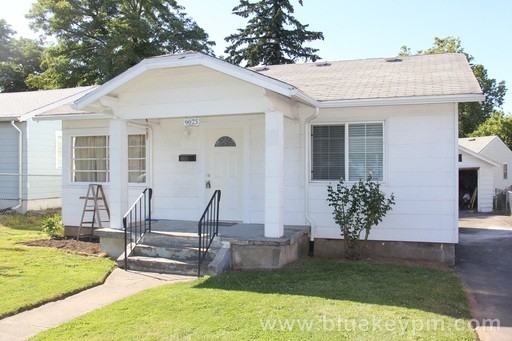 Cozy 2 bed 1 bath bungalow w/ easy access to I-205. Fresh paint and new carpet throughout. Large picture windows fill the living room with sunlight giving it a vibrant feel. Backyard has plenty of room to socialize with friends and family and to barbeque. One car garage and long driveway for parking. Close to shopping. For more info visit www.bluekeypm.com. Blue Key Property Management LLC 503-505-6461. $995 Security Deposit, $35 Application fee. Pets may be negotiable.