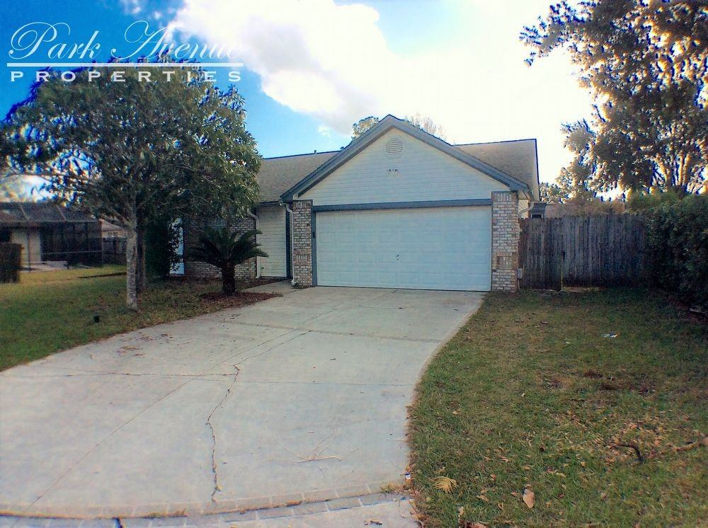 Enjoy this comfortable, family friendly ranch home on a cul-de-sac! This wide open floorplan with high vaulted ceilings is all Florida style living! A formal living room, dining room combo with decorative chair rail welcomes you in. The separate family room features a tiled, raised hearth fireplace with a wood mantle. The huge, walk through eat-in kitchen features a bay window in the breakfast nook and a decorative glass brick in the work area. With unbelievable storage and counter space, any cook will be thrilled to call this their home kitchen! The Florida room offers even more living space. The master bedroom features an on-suite bath with a shower stall. Two additional bedrooms, one with fabulous built-ins, and a spare bath finish this home. Located in the southern Jacksonville suburbs, this home is close to several parks, excellent shopping and dining and I-295 access. A short drive to Orange Park Mall and the Jacksonville Naval base.