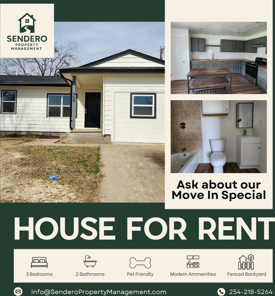 3-bedroom apartments at 909 Houston St cost about the same as the average rent price for 3-bedroom apartments in Killeen.
