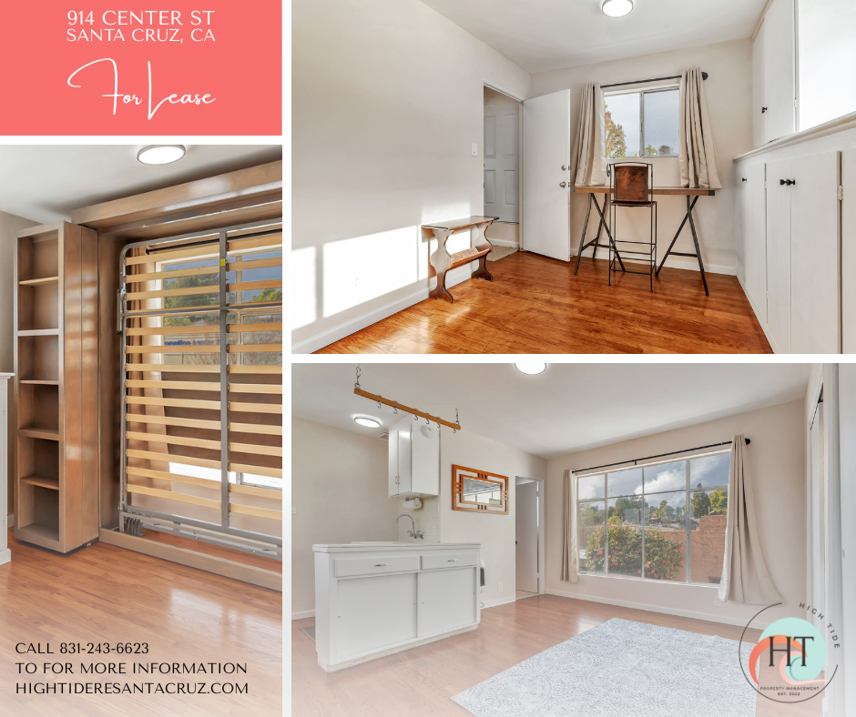 Sunny & Cozy Living at 914 Center Street! Looking for a charming and convenient home in the heart of Santa Cruz? 914 Center Street is a 1-bedroom, 1-bathroom upstairs unit thats perfect for anyone who wants to be close to downtown, the beach, and UCSC! Perched above the garage, this home offers smart space-saving features and a prime location for an easygoing Santa Cruz lifestyle. Home Highlights: 1 Bedroom | 1 Bathroom Cozy, functional, and full of charm! Rent: $2,195/month | Deposit: $2,195 Available: March 2025 Murphy Bed Included Maximize your living space with a convenient fold-away bed. Cute Kitchenette Just the right size for your cooking needs. Ample Closet Space Plenty of storage for your essentials. Location Perks: Walkable to everything downtown restaurants, coffee shops, and nightlife. Minutes from the beach & Boardwalk perfect for sunrise strolls or surf sessions. Quick drive to UCSC ideal for students or professionals. Whether you're a student, remote worker, or just looking for a laid-back place to call home, 914 Center Street is a shore thing! Call our leasing line at 831-243-6623 for more details or to schedule a tour! Listed by: High Tide Property Management Sherman & Boone Kaicie McMurray - LIC: 01827412