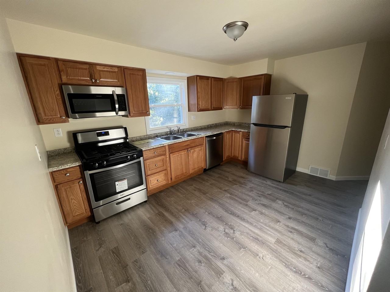 Fully renovated 3 bedroom one bath apartments. All brand new stainless appliances including dishwasher. Brand new windows. Private washer and dryer hookups and storage area located in the basement. On street parking. NO pets allowed. Gas furnace and water heater. Electric and gas in tenants name. Water, sewer, trash included.