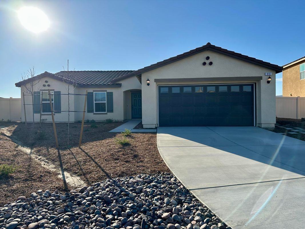 Welcome to your future home in San Jacinto, CA! This modern single-family home, built in 2024, offers a perfect blend of comfort and style with 3 bedrooms and 2 bathrooms spread over 1,688 square feet. The contemporary exterior features a tiled roof and a spacious driveway leading to a bright two-car garage. Inside, enjoy an open living area illuminated by large windows, along with a versatile room that can function as an additional bedroom or home office. The master suite boasts an en-suite bathroom complete with a separate shower and bathtub, making it a tranquil retreat. This property is pet-friendly, ensuring a warm welcome for your furry companions. Conveniently located near essential amenities, you're just minutes away from Hemet Global Medical Center, and shopping options. With dedicated parking and laundry hook-up availability. Schedule a viewing today!