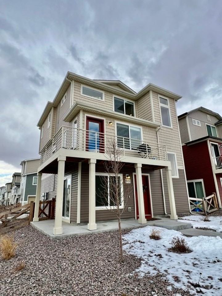 This turnkey property in Banning Lewis Ranch featuers several upgrades throughout! Main level provides access to 2 car garage and flex room with beautiful wainscotting and complimentary plank flooring- would make a great office space, playroom, dining room, whatever you need! Second level of property features living room with walk out to wraparound balcony and open kitchen with gorgeous granite countertops, large island, stainless steel appliances and recessed lighting! Two secondary bedrooms with access to hall bath on this level. The third floor includes flex loft/family room space and large master suite with attached full bath, featuring dual vanities, oversized shower and walk in closet. The exterior of the home features a fenced in xeriscaped yard, including a private fenced space and covered concrete patio. Property includes central air and solar panels! Tenant is responsible for solar panel and metro district dues. Solar payment is $118/month, which greatly lowers the electric bill for the home! Last 12 month total utility average (electric/gas/water/wastewater) was $99/month. Metro district dues are $174.45/month and include trash service, landscaping for the property (except fenced-in, xeriscaped private yard), snow removal, and access to community resources- including the clubhouse with a 24 hour gym, pool, children's water park and pickleball courts! Located in desirable Banning Lewis Ranch, with a small park great for dog walking nearby! Also close to schools, parks, hiking/biking trails, and more, don't let this one pass you by! 12-24 Month Lease Security deposit must be paid in certified funds. Amount based on credit report findings. Allows 3 pets, any weight No aggressive breeds. Management approval needed. Virtual tour: https youtu be uLO252ydDJg