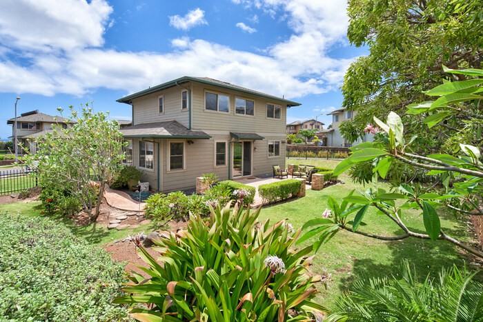 COMING AVAILABLE IN MID AUGUST! Enjoy this beautifully upgraded home located in Kahiwelo neighborhood in Makakilo. Originally a 4 bedroom home, one room is converted to a spacious loft area. Hardwood flooring in the Living/Dining Room areas, Ceramic tile in Kitchen and bathrooms, Luxurious Carpet in upstairs bedrooms and loft. Central AC for your added comfort. Appliances include Stainless Refrigerator Freezer, Stainless Stove/Oven, Dishwasher, Microwave, Washer/Dryer, Garbage Disposal Landscaped yard, with yard service included, perfect for bbq and entertaining Master bedroom features a double vanity, and walk in closet. Close to Kapolei with lots of dining, shopping and entertainment options. Easy freeway access eastbound or westbound Pet Friendly - Small dog only with pet deposit. No Smoking. One year lease. Application fee: $22/adult. Separate Pet Registration required, $20/pet. Proof of Renter's Insurance required prior to move in. For showing details, please contact Kim Furuyama, Property Manager (RS-59230) **** or 808-585-9239 Marie Hansen Properties Rental Terms: Rent: $3,295, Application Fee: $22, Security Deposit: $3,295 Pet Policy: Small dogs allowed Contact us to schedule a showing.