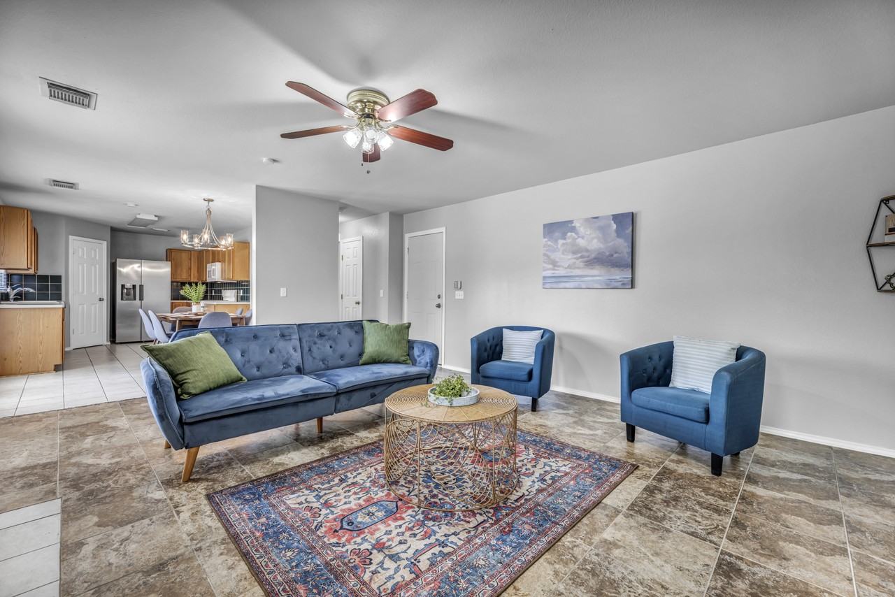 Enjoy the perfect blend of comfort and convenience at 920 Smoothing Iron Dr, Pflugerville, TX 78660. This intimate community consists of 4 units, offering a spacious 6-bedroom floorplan with sizes ranging from 100 to 110 square feet. Residents can take advantage of top-rated schools nearby, including a high school with an A- or higher rating. Key features of this property include keyless entry, modern kitchen, high-speed internet, full-sized washer and dryer, and furnished homes. Although utilities are not included, the property offers a range of amenities, such as a balcony patio, central heat, hardwood floors, HVAC system, on-site laundry, and outdoor space. Note that this is a long-term rental property and is not pet-friendly.