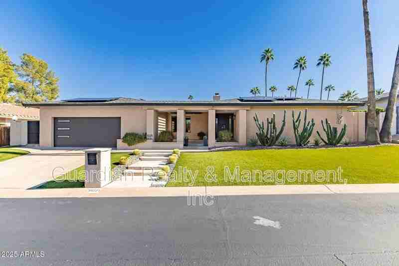 Lovely updated Heritage Heights home at the base of the Phoenix Mountain Preserve directly off AZ-51 and 32nd St. This home has been remodeled throughout with wood like flooring, top of the line appliances and tasteful finishes. The living areas share a custom fireplace and the home has recessed lighting throughout. The backyard is an entertainer's dream with a built in BBQ, fridge and sink, expansive covered patio, beautiful turf, lemon trees, mounted TV and heaters. There is also an adorable finished she-shed with a window A/C unit. A gate leads to the community center, pickleballs court and community pool. Master bedroom is split from the other bedrooms and the bath has been updated to include a large walk-in shower. One of the four bedrooms is best suited as a guest room or home office as it has a built in murphy bed that converts to workspace from Scottsdale's Wall Bed n More. Garage features built in storage and a water softener. This home has it all.