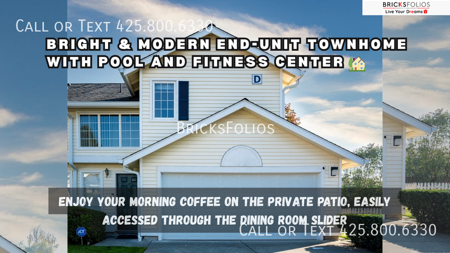 TL;DR: Experience the perfect blend of comfort and convenience in this lovely end unit, two-story home. With a chef's kitchen, cozy living spaces, and a private patio for morning coffee, this residence is designed for modern living. Enjoy excellent amenities and easy access to everything you need in Mukilteo. Available soon, don't miss out—schedule your tour today! Spacious Living Areas: Step into a world of warmth and comfort in the inviting main level, where hardwood flooring flows seamlessly beneath your feet. The cozy living room, complete with a charming fireplace, sets the scene for relaxing evenings or lively gatherings with friends and family. Picture yourself unwinding here after a long day, enveloped in the tranquil atmosphere of your new home. Modern Kitchen: Cook like a pro in your chef’s kitchen, where granite countertops and stainless steel appliances await your culinary creations. With ample storage space, you’ll have everything you need to whip up delicious meals, whether it’s a quick breakfast or an elaborate dinner party. The kitchen flows into the dining area, making it easy to serve up your latest masterpiece. Comfortable Bedrooms: Retreat to the spacious primary suite, your own personal oasis. Featuring a ceiling fan for those warm nights, a private bath for ultimate convenience, and a generous walk-in closet to keep your belongings organized, this suite is designed for relaxation and rejuvenation. Imagine waking up refreshed and ready to embrace the day in such a serene environment. Stylish Bathrooms: Enjoy the luxury of your private bath, designed with both style and function in mind. Every detail speaks to comfort and ease, making your daily routines feel like a treat rather than a chore. Outdoor Living: Step outside to your private patio, the perfect spot to sip your morning coffee or unwind in the evening breezes. This outdoor space invites you to enjoy the fresh air, whether you’re hosting friends for a barbecue or enjoying a quiet moment with a good book. Move-In Ready: This home is ready for you to make your own, featuring modern finishes and thoughtful design throughout. With easy access to I-5, I-405, and Hwy 99, plus close proximity to dining, shopping, and schools, you’ll find everything you need right at your fingertips. And with access to excellent amenities like a pool, fitness center, and playground, your lifestyle here will be as vibrant as it is comfortable. Homes like this don’t last long. Schedule your tour today and take the first step toward your next chapter. Owners pay the monthly HOA dues, and the residents pay the utilities. ______________________ BricksFolios offers competitive rental co-broker commissions to licensed brokers, so please contact us for more information. ______________________ BricksFolios Property Management is an equal housing lessor under the FHA. Applicable local, state, and federal laws may apply. Additional terms and conditions apply. This listing is not an offer to rent. You must submit additional information including an application to rent and an application fee. All leasing information is believed to be accurate, but changes may have occurred since photographs were taken and square footage is estimated—renters to verify all the information. Furthermore, prices and dates may change without notice. Please note this home may be governed by a HOA and could require additional applications and/or fees. An account set-up fee will be charged on all new leases...