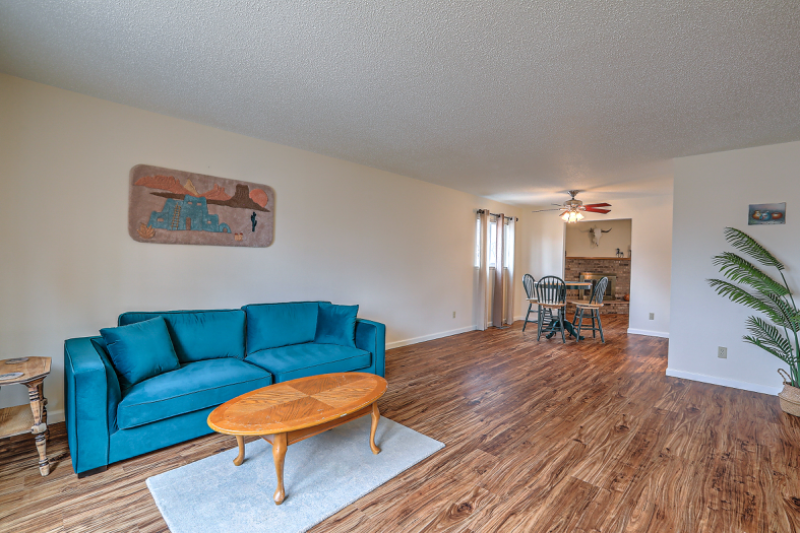 Property Id: 1396786 This charming, well-maintained, single story home offers 3 bedrooms, 2 baths, a 2 car garage on nicely landscaped lot in lovely and quiet neighborhood in the far NE heights. This beautiful home has all the best schools and is close walking distance to restaurants, breweries, hair/nail salon, and shopping. Take a stroll in this quiet neighborhood, hike to Bear Canyon Arroyo or a short drive to hike in the Sandias. Relax by the fireplace in the den, or entertain guests in the gracious light & bright living/dining room. Check out the fenced backyard with covered patio and space for entertaining or just relaxing and enjoying the great New Mexico sun in your own private yard. A separate laundry room, with washer and dryer provided, has room for laundry items as well as a pantry. A two car garage with remote openers, features storage for hobbies or cars. Update include: new paint, flooring, new water heater, new furnace, new fridge all installed between 2022-2023.