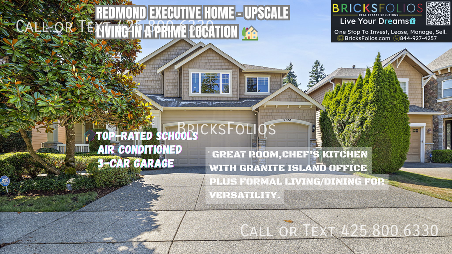Signing lease before April 7th for $4600 before rent adjusts to market rent of $4850. Open House on Saturday March 28th 11 AM to 1 PM. RSVP must to attend. Executive Living in Redmond – A Murray Franklyn Masterpiece Step into sophistication with this fully updated 4-bedroom, 2.5-bath executive home by Murray Franklyn, freshly painted inside and out to impress even the most discerning resident. From refined finishes to thoughtful upgrades, every detail speaks to comfort, quality, and timeless design. Elegant & Functional Living Spaces: An open-concept living room with a cozy fireplace flows effortlessly into a formal dining area—perfect for both upscale entertaining and relaxed family dinners. Sliding doors open to a professionally landscaped, fully fenced backyard, ideal for quiet mornings or lively gatherings. Chef’s Kitchen That Shines: At the heart of the home is a stunning kitchen featuring granite countertops, stainless steel appliances, and a spacious pantry—crafted for culinary creativity and easy entertaining. Primary Suite Sanctuary: Upstairs, escape to your private retreat in the luxurious primary suite, complete with a spa-inspired 5-piece bath and a large walk-in closet. A bonus room offers flexible space—home office, gym, theater, or playroom—tailored to your lifestyle. Executive-Level Upgrades: From brand-new epoxy flooring in the 3-car garage to modern touches throughout, this home blends elegance with function. Whether working from home or entertaining guests, you’ll love the upgraded touches throughout. Premier Location Located in the heart of Redmond Ridge, enjoy walkable access to Rosa Parks Elementary, Timberline Middle School, community parks, and trails. Commuting is a breeze with nearby Microsoft & SpaceX shuttle stops, and quick access to dining, shopping, and Redmond tech campuses. Rental Terms: - Pets allowed on a case-by-case basis ($50/pet/month). - HOA paid by owner - Tenants responsible for all utilities - No smoking This move-in-ready home is not just a place to live; it's a lifestyle waiting to be embraced. Schedule your tour today and make this dream home yours! _____________________ BricksFolios Property Management is an equal housing lessor under the FHA. Applicable local, state, and federal laws may apply. Additional terms and conditions apply. This listing is not an offer to rent. You must submit additional information, including an application to rent and an application fee. All leasing information is believed to be accurate, but changes may have occurred since photographs were taken and square footage is estimated. Renter to verify all information. Furthermore, prices and dates may change without notice. Please note this home is governed by a HOA. An account set-up fee will be charged on all new leases. All adult occupants need to apply. Application fee is $40 per adult. __________________ Beware of scams: We will never ask you for your username and password. We do not advertise on, Facebook Marketplace, etc. We will never request funds through a payment app like CashApp, Venmo, Zelle or Western Union. For more info, please submit an inquiry for this home. Applications are subject to our qualification requirements. Additional terms and conditions apply. CONSENT TO TEXT MESSAGING: By entering your mobile phone number, you expressly consent to receive text messages from BricksFolios. Message and Data rates may apply. * Please refer to our Tenant Selection Guidelines. Please ask at the ..