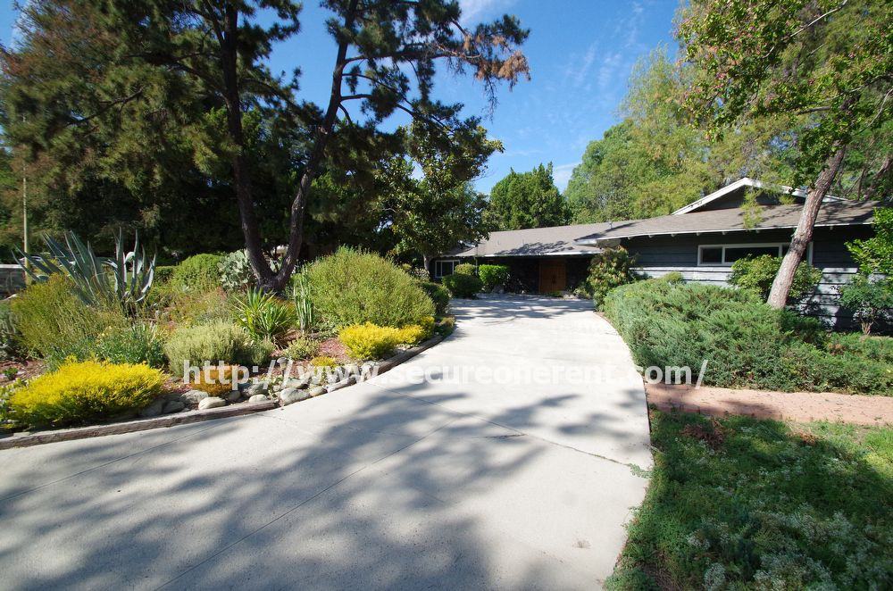 This beautiful single story home is nestled on a well maintained street in a desirable Northridge neighborhood. This lovely home is a special rental opportunity, boasting loads of vintage charm with modern upgrades. The home is settled behind a large circular driveway and gorgeous landscaping. It boasts gleaming wood floors throughout, freshly painted walls, ceiling fans in every room, recess lighting, vinyl windows, and central heat and air. The living room has an oversized patio door and a fireplace. The family room offers a patio door and a fireplace. The stunning kitchen has so much charm and character, featuring stainless steel appliances, retro tile backsplash, ample cabinetry space, provided fridge, and vintage fixtures and built-ins. This home has 4 bedrooms and 3 bathrooms. The master suite has an attached private bathroom, vanity area, and a door providing access to the backyard. The fabulous park-like backyard is perfect for entertaining and relaxing! It offers a fire-pit, in-ground spa, sports court, landscaping, and covered patio area. There is a large laundry area and the washer/ dryer are provided. There is a 2 car garage. This is a non-smoking property. Please submit for a pet (no large dogs). Gardening and pool service an provided.