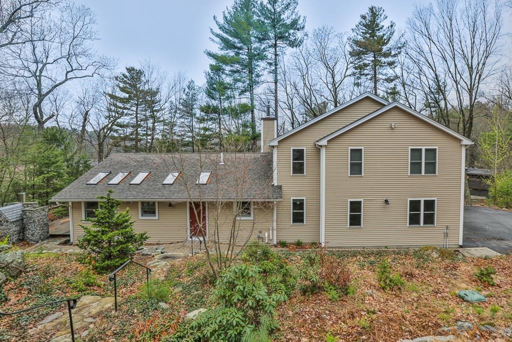 Delight in peace and tranquility at this custom property with direct access to Bare Hill Pond out your door! Wraparound deck and water views abound at this beautifully updated and fully renovated home offering an open floor plan. Custom kitchen w/ cherry cabinetry, granite counters/island, Wolf gas range, Bosch dishwasher. Dining area features walls of windows and sliders with access to the deck and Italian pizza oven. Step down into the sunken great room w/ floor to ceiling stone propane fireplace and built in shelving. Lower level family room w/walk out to patio, built in shelving and master suite w/ window bench and water view, walk-in closet and stunning bath with dual vanities, stone and tile shower, glass coutnters. Two story addition featuring loft/office area, hardwood flooring, two additonal bedrooms, walk out deck and full bath. Large laundry room and additional room in basement. Mature plantings and landscaping, easy access to town center, school, library. Nature abounds at this gem!