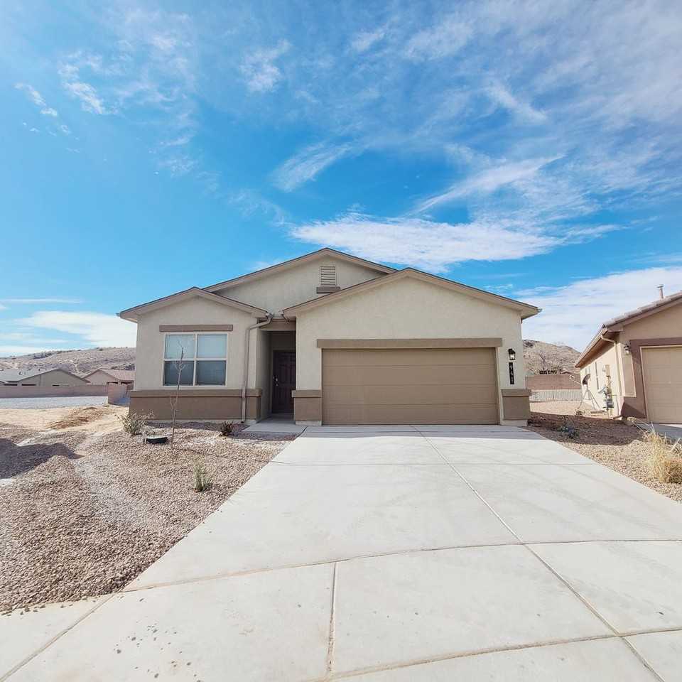 Discover this 4 bed, 2 bath home in Huning Ranch, Los Lunas. The well-laid-out interior includes a functional kitchen with stove/oven, built-in microwave, refrigerator, dishwasher and disposal. Enjoy refrigerated air throughout and keyless entry for convenience. The property features a garage, a fenced backyard and a patio with pleasant views, offering indoor-outdoor living and secure outdoor space.