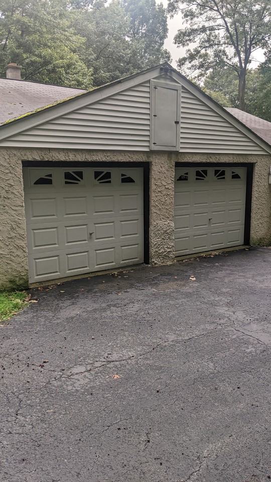 3 bay garage in Twin Valley school district. Bay #1 is a drive thru bay with manual garage doors on each end of the garage. Built in shelving units and utility sink. There is overhead power cords and lighting. Bay #2 is oversized with automatic garage door. Overhead lighting. Space to park 2 cars/ pick up trucks . Bay #3 has 2 manual garage doors, overhead lighting and power cords. There are 2 work benches and shelving units.
